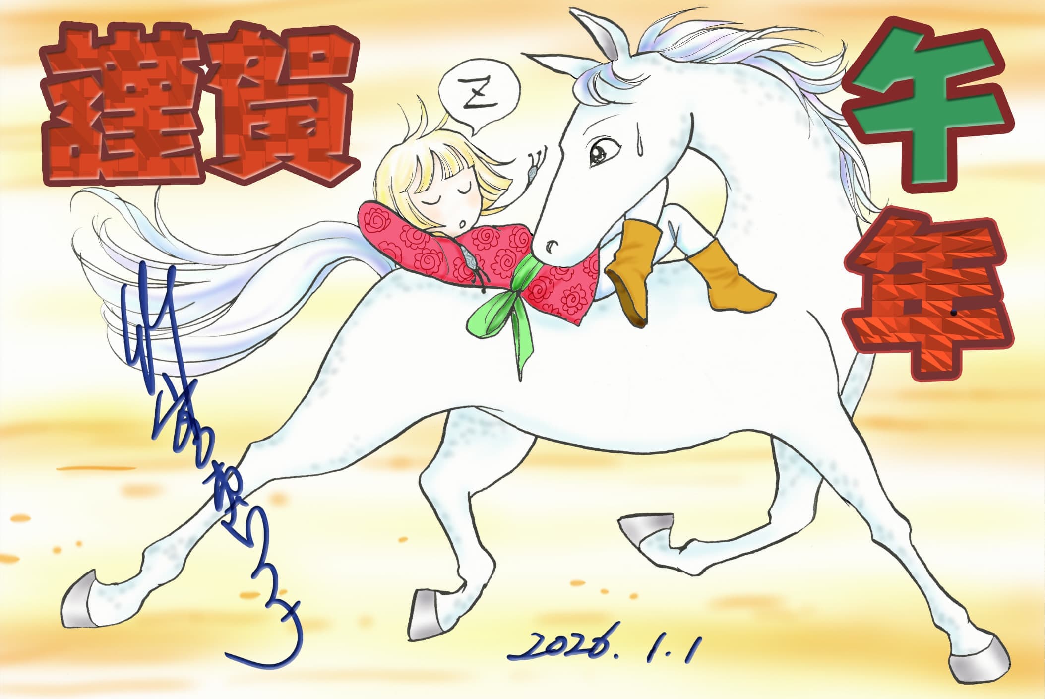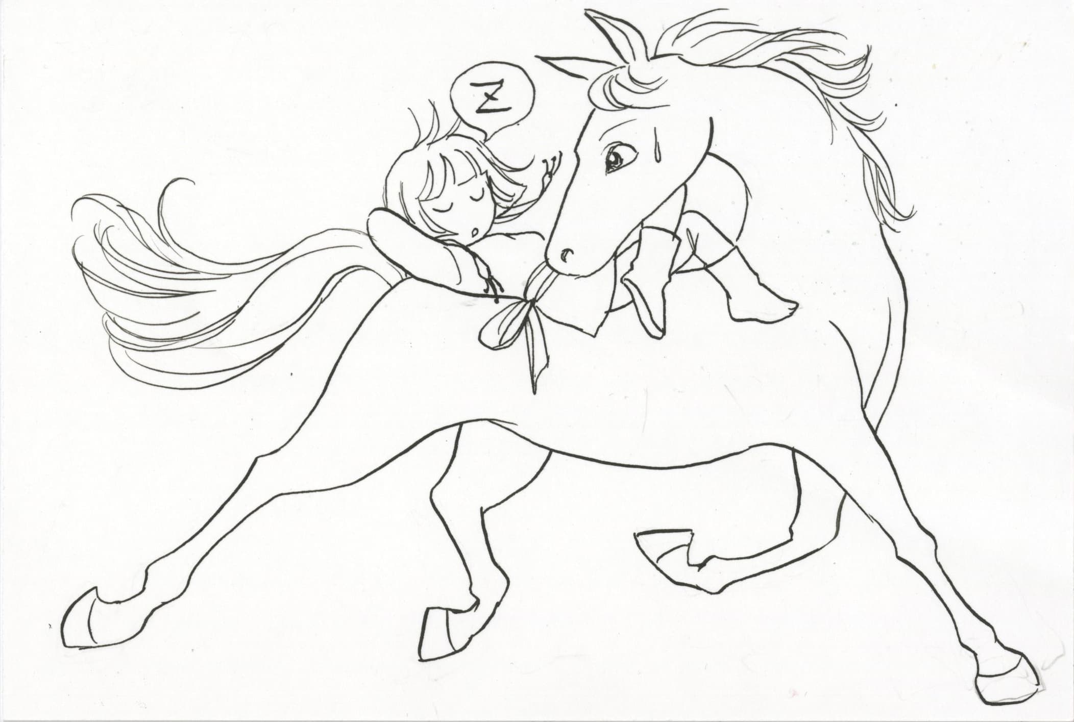 人物と馬だけハガキに描いて、スキャン。あとの色つけはデジタル。